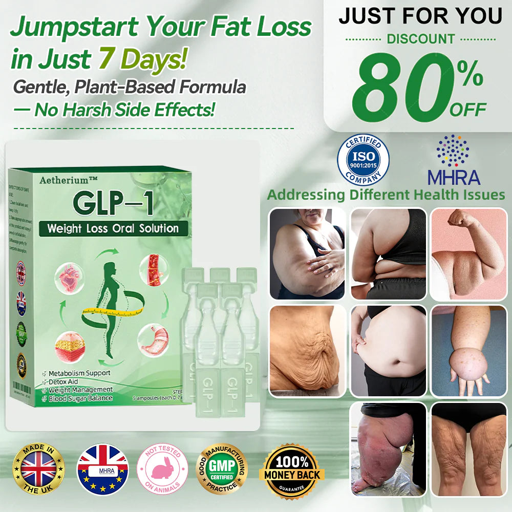 "I was once on the brink of death due to severe obesity. My health was deteriorating fastâI had high blood pressure, diabetes, and no energy to even get out of bed. After trying countless diets and treatments with no success, I found Aetheriumâ˘Â GLP-1 Six in One Health Solution Oral Liquid. At first, I was skeptical, but I decided to give it a try. To my surprise, within just two months, I lost 80 pounds, my blood pressure normalized, and I felt more energetic than ever before. This product truly saved my life, giving me a second chance to live a healthy, happy life." - Linda Brown, London, UK